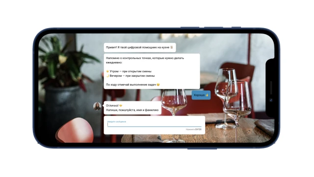 Чат-бот ежедневно напоминает поварам о задачах при открытии и закрытии смены, а также составляет отчет о выполнении.