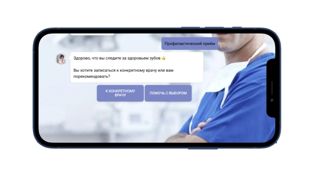 В зависимости от ответа бот предлагает несколько вариантов: сразу же назначить прием, выбрать конкретного врача или помочь с выбором.