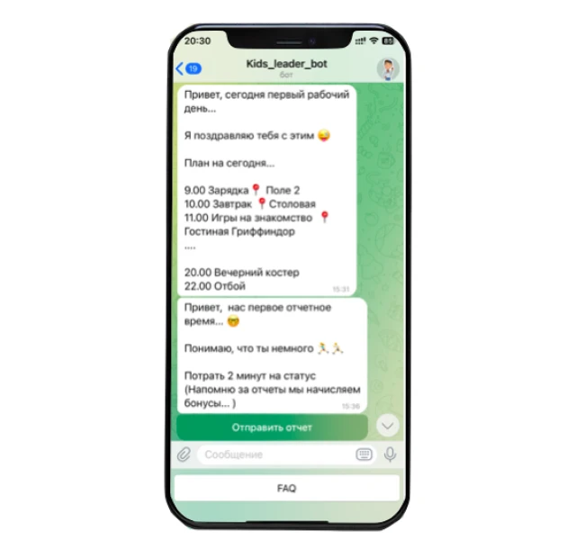 Они запускают бот и он рассказывает правила игры. Каждое утро бот будет напоминать каждому вожатому про план занятий