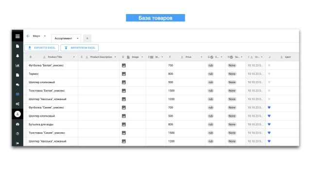 2. В разделе “Таблицы” добавьте ваш ассортимент товаров.