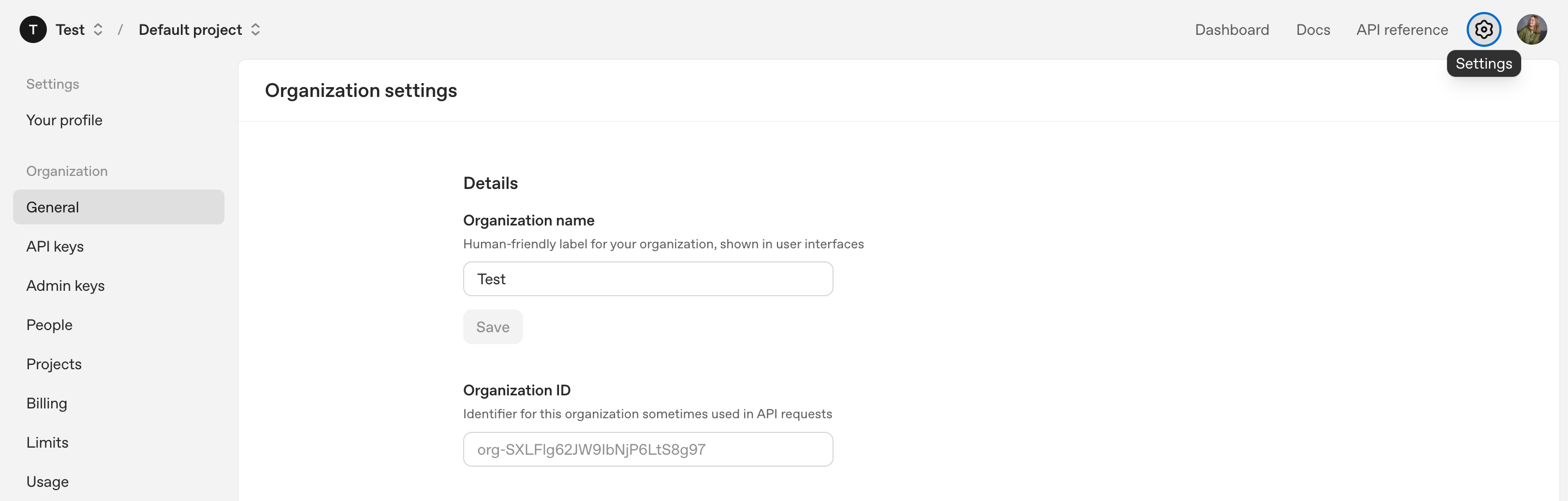 Чтобы узнать идентификатор вашей организации, нажмите на значок ⚙️ в правом верхнем углу → Settings → General.