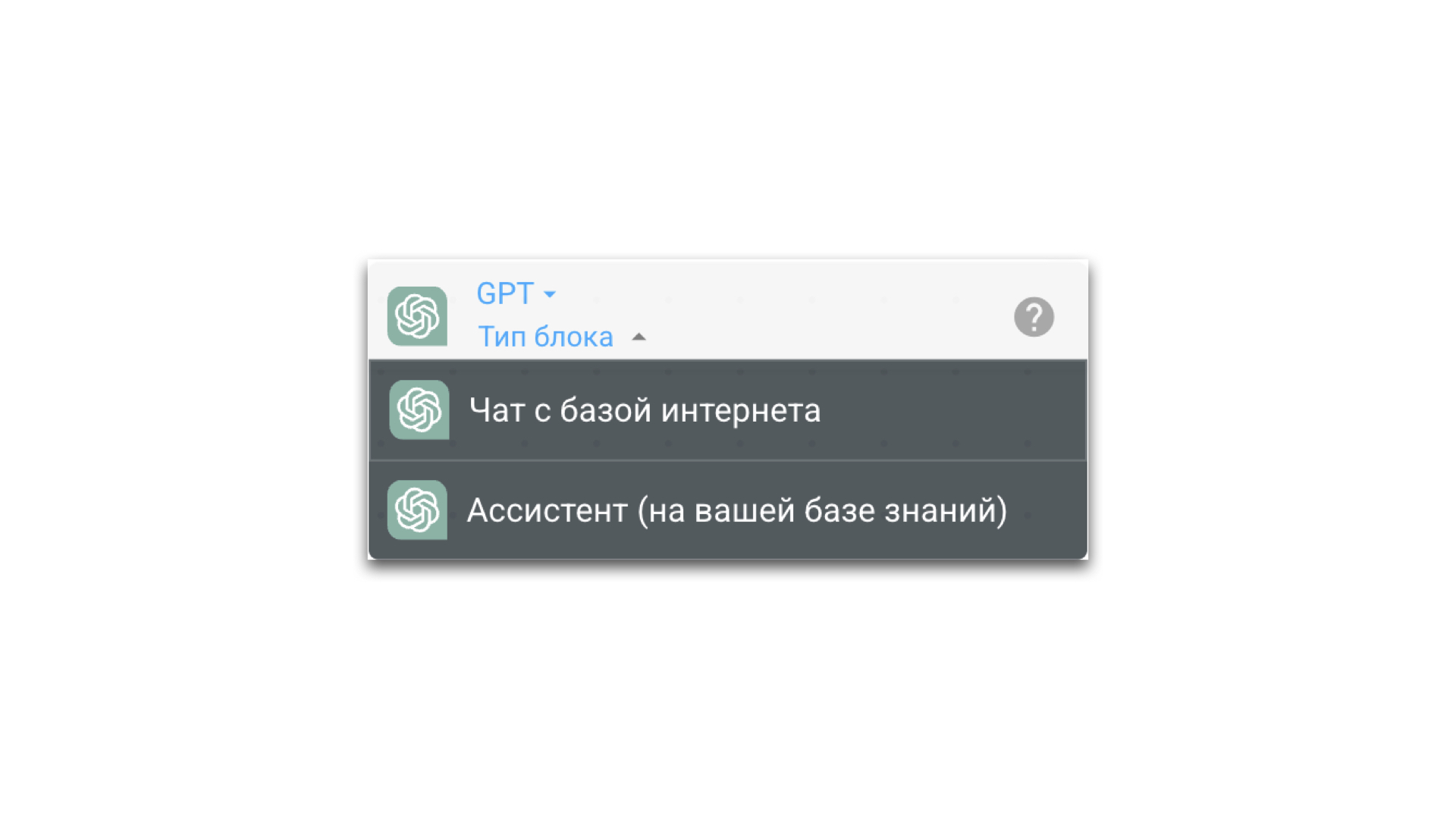 Интеграция с GPT подключает к вашему боту искусственный интеллект OpenAI. Он помогает оценивать резюме, отвечать на вопросы, модерировать чаты, проводить интервью, обучать и выполнять сложные диалоговые сценарии.