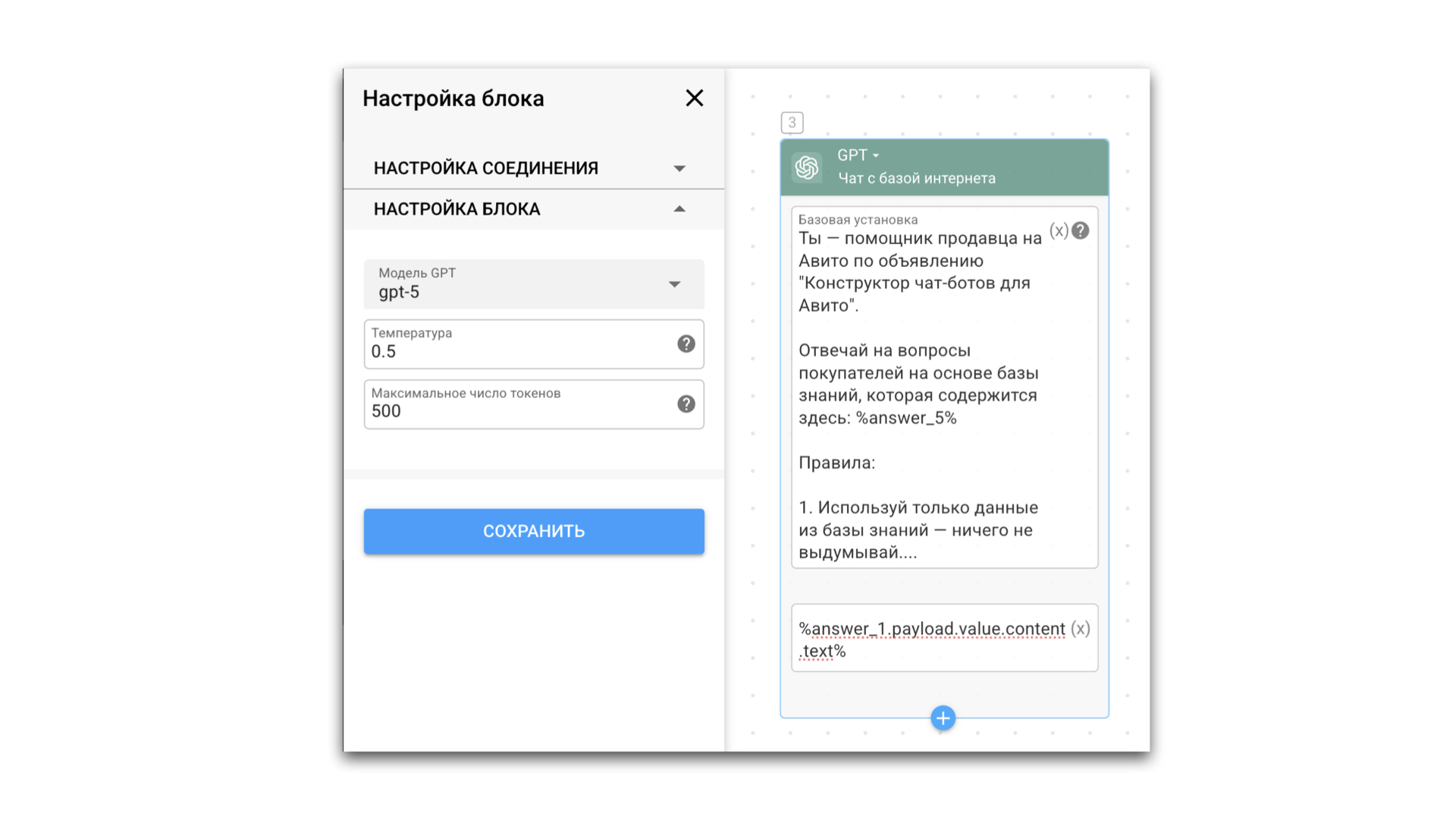 3. Настройте интеграцию с ChatGPT и сценарий бота